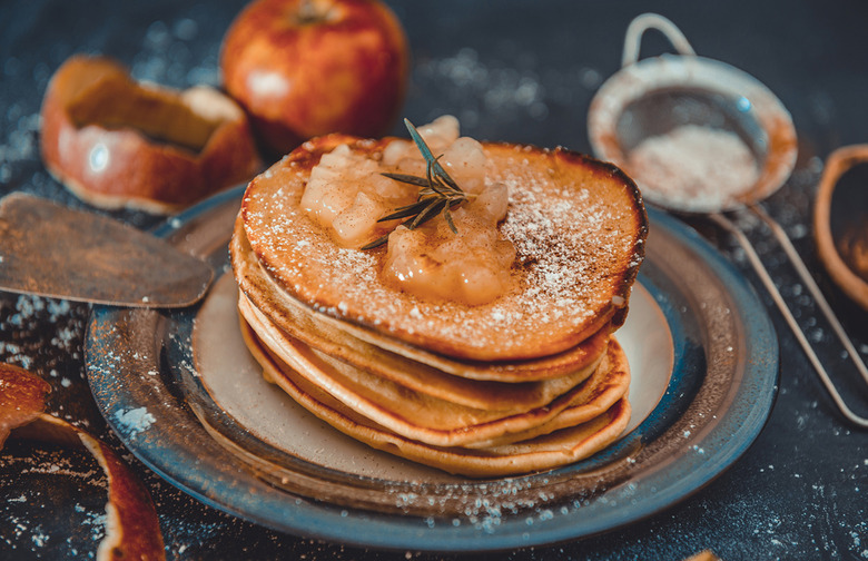 Apple Cinnamon Pancakes with Warmed Cider Sauce