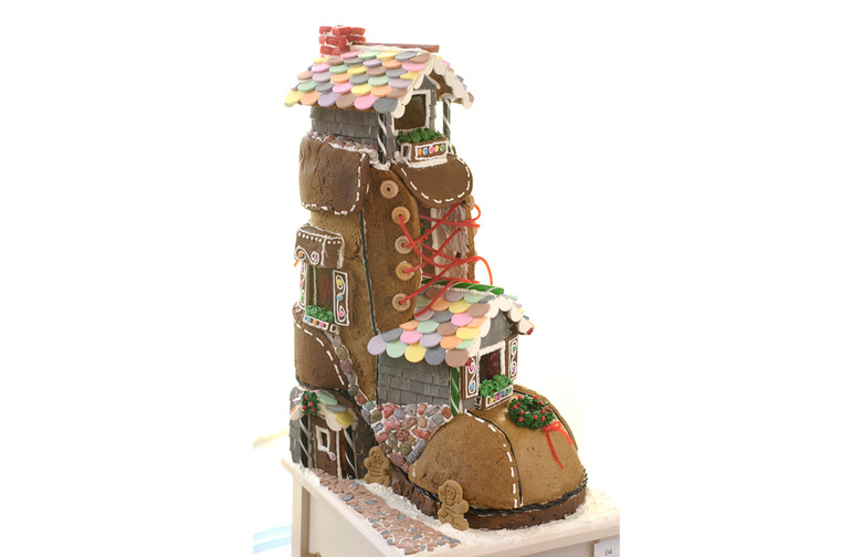 For the old woman who lived in a shoe and didn't know what to do, this shoe house solves all her problems. Inspired by the famous nursery rhyme, this gingerbread shoe has licorice laces, two candied roofs, and a secret entrance by the heel. If you look closely, you can see some of her gingerbread children in the front lawn.