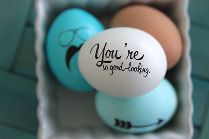Want your eggs to be super trendy? Try these fun hipster eggs, made with a simple dye kit and funny temporary tattoos. These are especially great if you are hosting an adult egg-dyeing party.