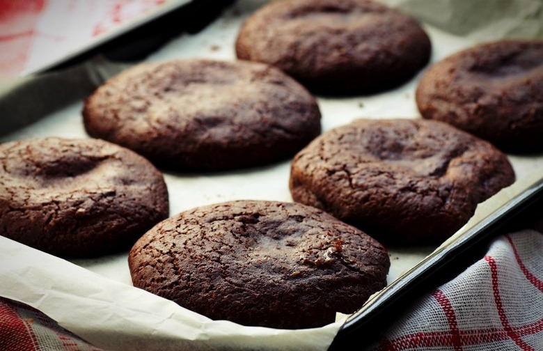 These decadent chocolate cookies are filled with walnuts and chocolate chunks to create a crunchy cookie. Place a piece of gelt on top of these cookies to celebrate the popular Jewish custom of giving children chocolate coins for Hanukkah.