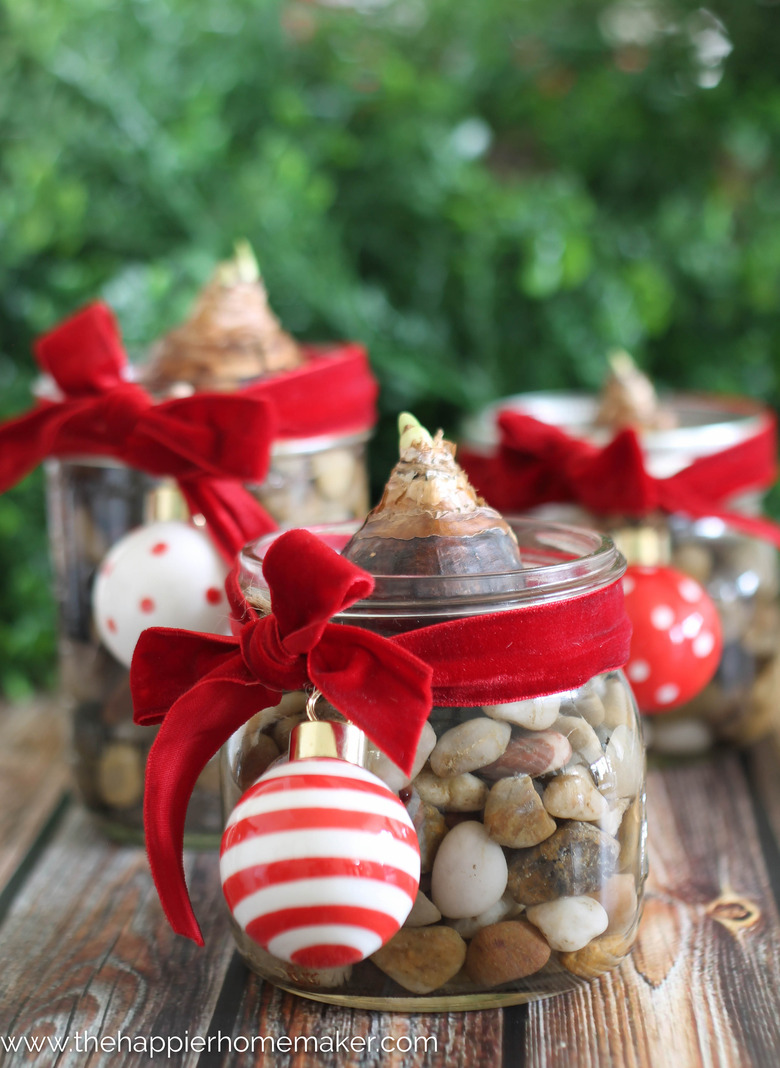 Give the gift that keeps on growing this winter with the Paperweight Bulb Mason Jar from The Happier Homemaker. Easy to assemble, these gifts will get the whole family involved planting, watering, and watching the bulb grow.