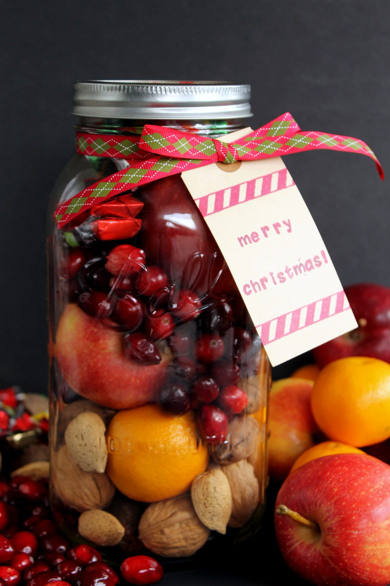 Take a traditional holiday gift and make it modern with Country Chic Cottage's Fruit Basket in a Jar. Mix up the fruit and nuts you choose based on the preferences of friends and family!