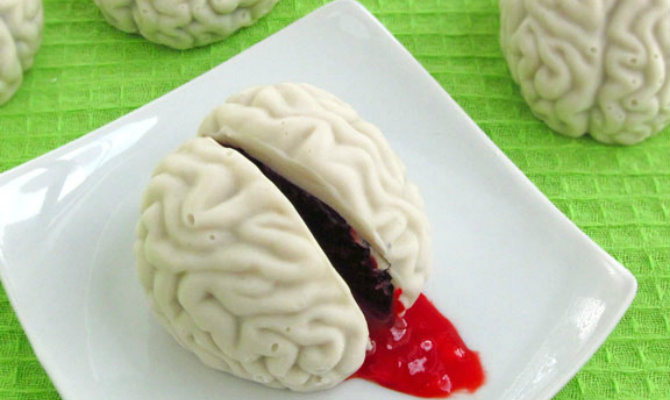 These slightly gory but totally delicious brain cake balls from Hungry Happenings are perfect for a Zombie themed Halloween party.