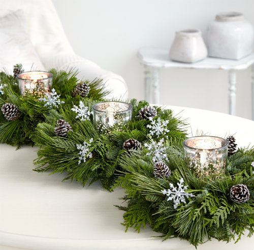 With assorted pine sprigs and glittered pine cones, it creates the perfect ambiance for any holiday party tablescape and also makes a great hostess gift!
