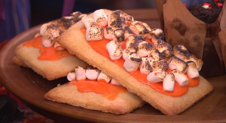 The bat cookie isn't the only fan favorite returning to Disneyland and Disney California Adventure. There's also the Spooky Cone Macaroon with a marshmallow filling and plenty of candy corn. It's also the perfect thing to Instagram when you're over in Cars Land. And because the Headless Horseman is an icon of Halloween time at the Disney theme parks, he gets his own cupcake, too.
