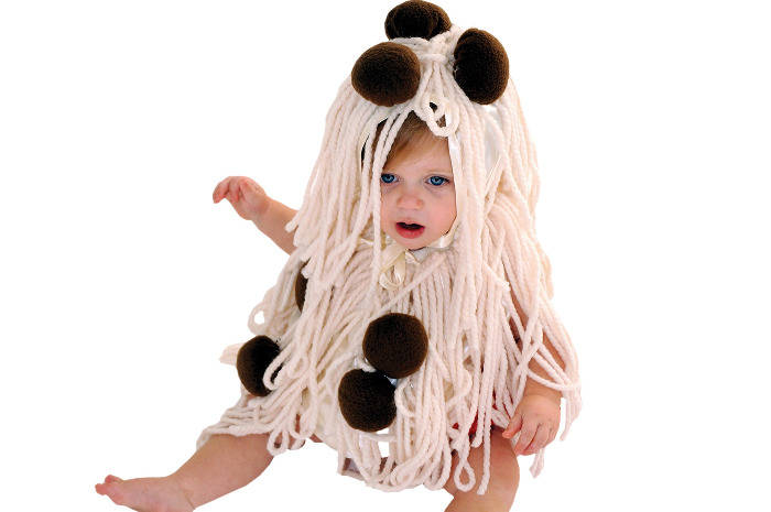 What is more fun than dressing a baby up as delicious spaghetti and meatballs? With a little yarn and a bowl, it's easy to create this Italian masterpiece. Pairing your spaghetti baby with a cannoli and a pizza man makes this family costume complete.
