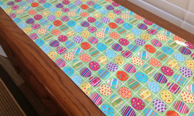Lay this festive and colorful Easter egg-inspired table runner across your table.