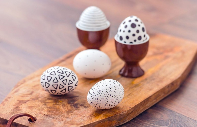 All you need to make these classy Easter eggs is a black permanent marker. After hard boiling your eggs and cooling them, simply draw on your eggs with your marker. You can do whatever sort of minimalist design tickles your fancy, from pointillism to bold geometric designs.