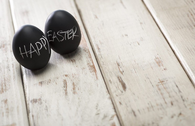 If you love the rustic look of a chalkboard, you can easily bring it to your Easter eggs. All you need to do is buy some chalkboard paint and coat your eggs thoroughly. Then, take standard chalk or chalkboard paint and doodle changeable, customized messages on your eggs.