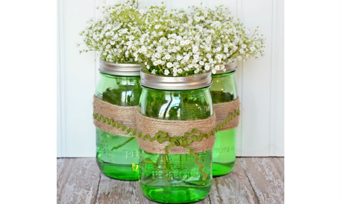 Add a green touch to centerpieces by using Spring Green Heritage Collection Jars in place of vases. Fill with delicate baby's breath flowers and wrap with twine for an easy decoration. These are also great to keep and refresh come Easter!