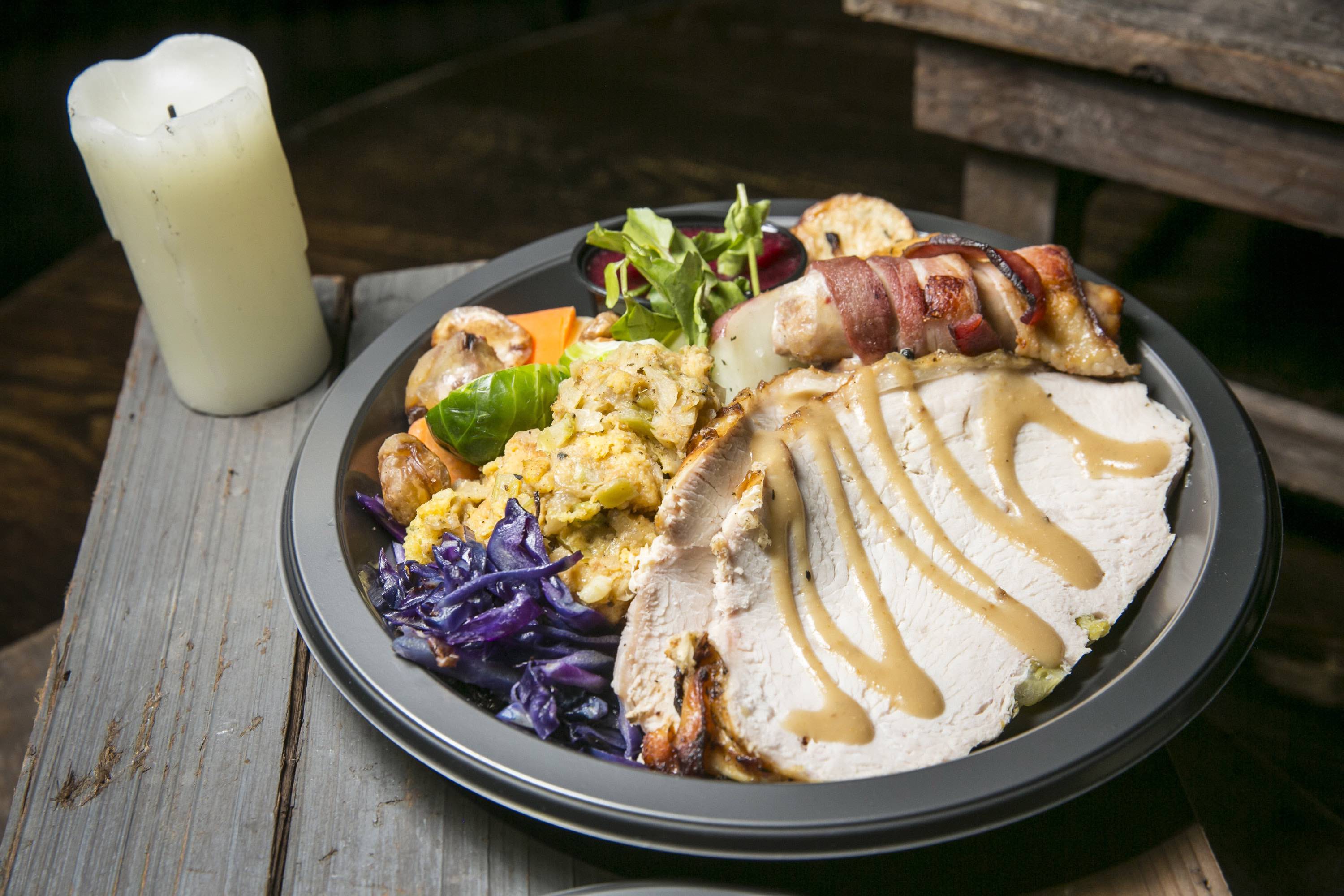 The village's famous Butterbeer, available hot, cold, and frozen, as well as pumpkin juice, is available to drink with roast turkey, pigs in blankets, vegetables, and Christmas pudding at the Three Broomsticks restaurant.
