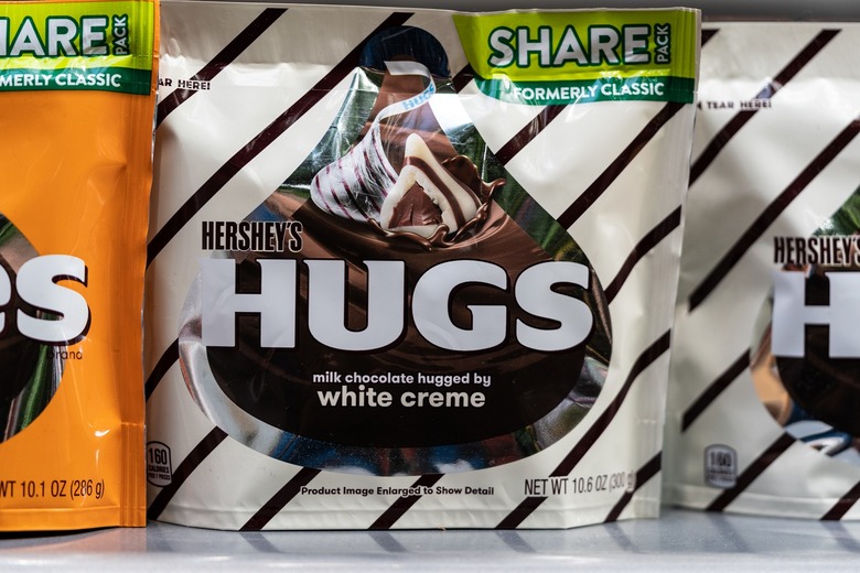 We love all sorts of flavored Hershey's Kisses, from cherry cordial to almond to hot cocoa, but our absolute favorite is the classic Hershey's Hug, a little milk chocolate Kiss wrapped up in white creme. It's a treat that we can only seem to find this time of year. The Hershey's Hug is so satisfying, just like an actual hug.