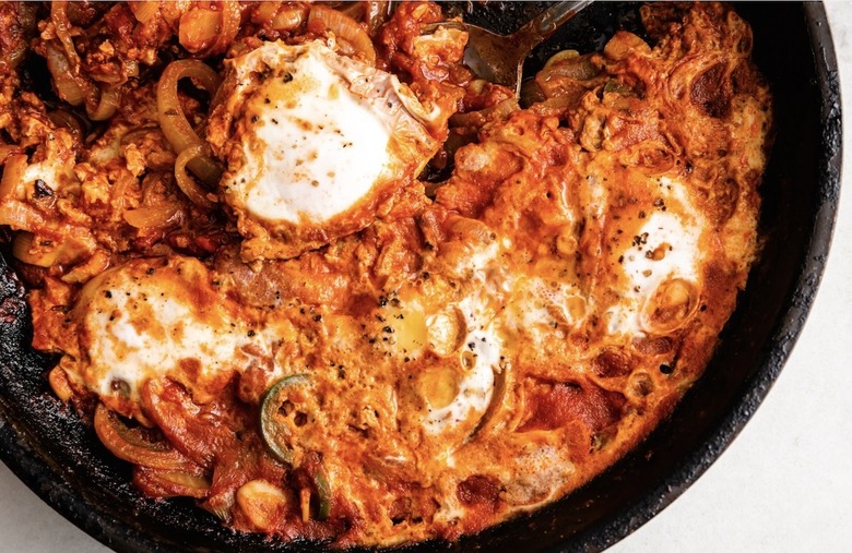 If you want to make yourself an elegant brunch, but you're not a fan of cleaning up a bunch of eggy or syrupy pots and pans, this one-pan shakshuka is a no-brainer. Just don't forget plenty of bread to sop up the extra sauce.