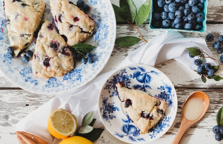 Once you get your morning pot of coffee brewing, making these blueberry lemon scones is a logical next step. The dense, flaky treat takes less than one hour to make and the result is a chewy delight of sweet blueberries and tart lemons.
