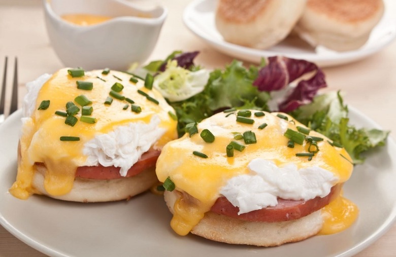 It's time to make some noise for a crowd favorite: eggs Benedict. If you're like us, this dish is your go-to order when you hit the town for bottomless brunch deals. Luckily, this recipe makes poaching your own eggs at home seem like a breeze.