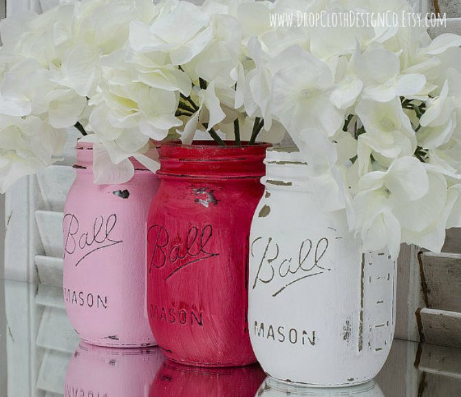 4. Or you could just paint mason jars into sweet, seasonal colors.