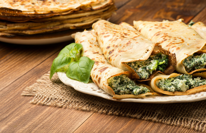 Kick off the New Year with an impressive brunch crepe. The ricotta and spinach filling is cheesy and full of leafy greens, and combines with the soft, thin crepe for an exquisite meal. Drizzled in a smoked salmon and dill sauce, this crepe is a savory breakfast dish that's definitely going to impress the in-laws.