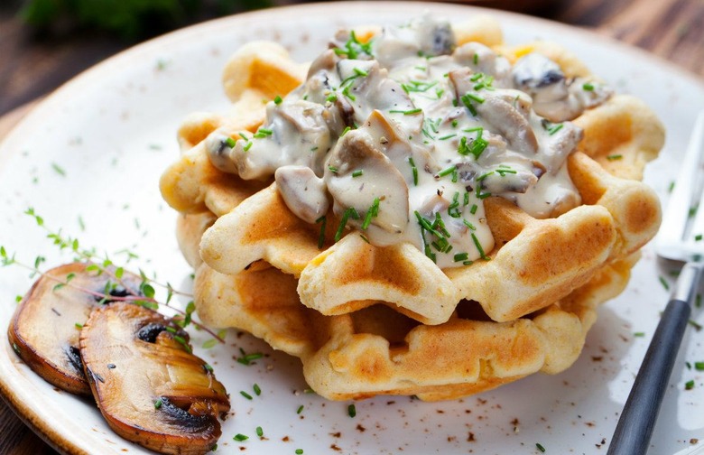 These waffle bites are great things to serve at a brunch buffet, because everyone can get a little taste of the snack without filling up on it! The waffle is actually made from crunchy hash browns, sizzling bacon, and jack cheese for a spicy, savory bite. Drizzled in a crème fraîche and sriracha sauce, these waffle tots are filled with flavor and make for an incredibly impressive starter.