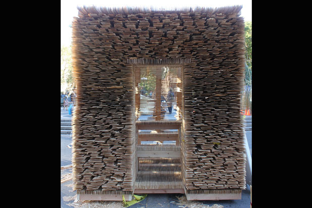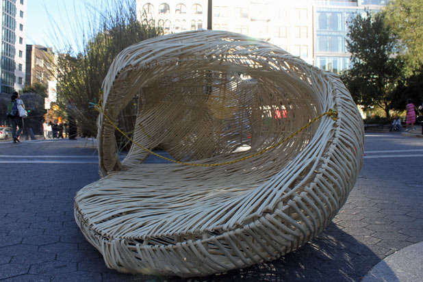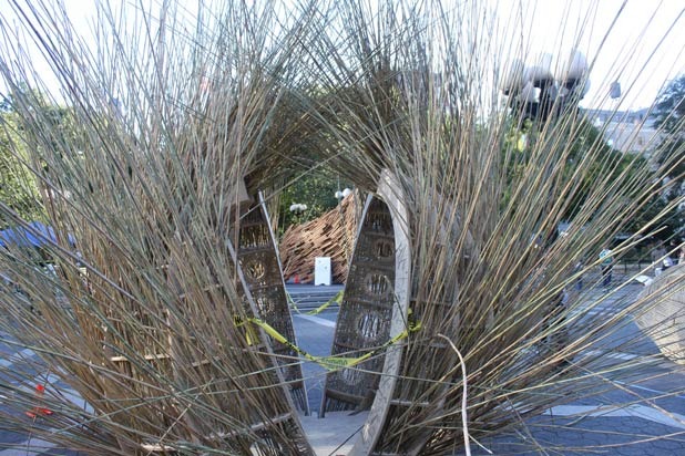 Winding and turning, this thick wicker Sukkah gives a curvy shape to an often sharply edged structure.