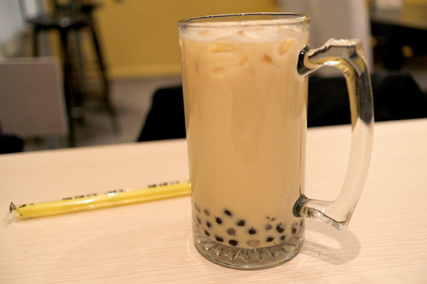 It goes by different names in other countries, but in Taiwan, where it originated in the 1980s, it's called pearl milk tea: an iced, sweet, tea drink that contains what look like small bubbles (tapioca balls) at the bottom of the drink. The drink comes in many flavors and is generally made in two forms: a fruity, iced tea, consisting of fresh fruits, tea, and crushed ice; or a milkshake-like tea, made by combining tea, (sometimes) milk, powdered flavoring, creamer, water, and crushed ice.