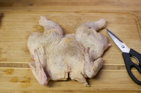 Spatchcocking — a technique where the backbone is removed from a bird so that it can be split and flattened, is a beautiful way to cook a full bird in less time. The French call a spatchcocked bird en crapaudine, since, with a stretch of the imagination, it resembles a flat toad or crapaud.