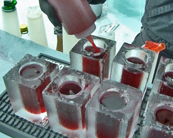 One of the bar's best offerings is called (aptly) the Cold & Crazy. Recently, we learned the steps to this delicious cocktail conjured up in the coldest of climates. You start with some Absolut Raspberry and add blackberry liqueur, blueberry juice, and blood orange syrup. You may not have an ice glass to serve it in, but the fruity concoction will still be a crowd-pleaser.