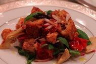 Panzanella is a classic Italian bread salad. Baker says it's good to serve any time during the year and is traditionally made using day-old ciabatta bread and whatever fresh vegetables you have on hand. Her roasted tomatoes were divine.