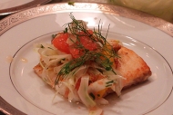After a somewhat heavy and very meaty pasta course, Baker served a light, flaky lemon sole dish. When menu planning, think about the meal as a whole and how best to balance flavors and textures.