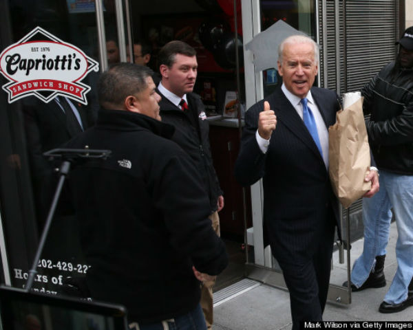 Biden made an appearance at the grand opening of Capriotti's Sandwich Shop, an Italian hoagie chain based in Delaware, according to Huffington Post.