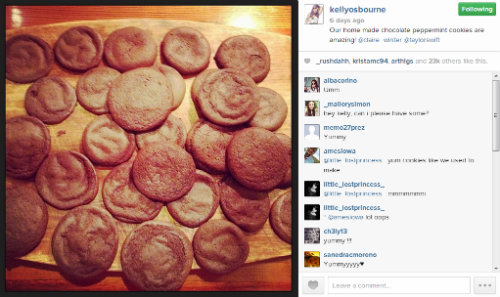 Kelly Osbourne and Taylor Swift got together for the ultimate girls' night of gossip and baking chocolate peppermint cookies. Osbourne, the daughter of rock star couple Ozzy and Sharon Osbourne instagramed the night, saying "#GirlsNight baking with @taylorswift you guys have no idea how good Taylor is at cooking! #shocked @taylorswift13"