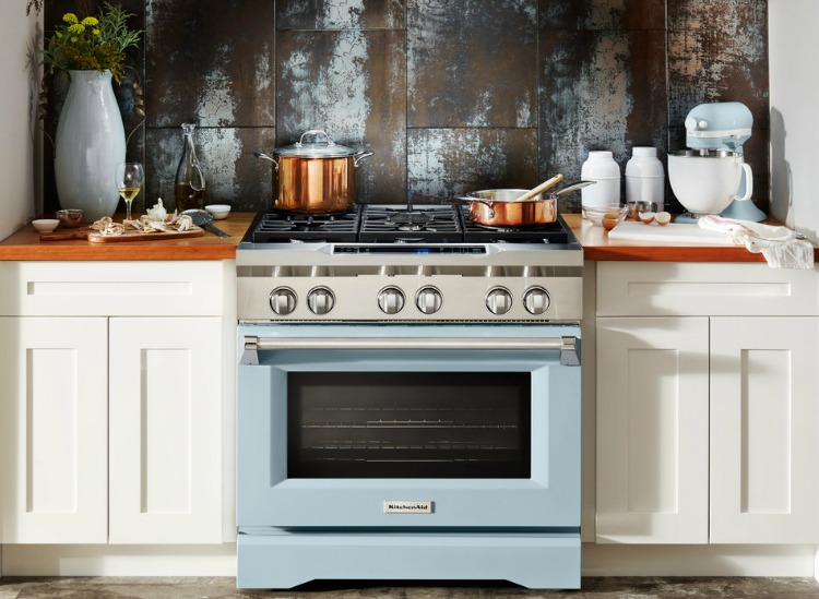 KitchenAid mixers come in a dazzling array of colors, and now a new shade has been released to celebrate the company's centennial. Cooks and bakers can now buy the brand's 5-quart tilt-head stand mixer and its 36-inch dual-fuel range in a delicate hue that's been dubbed misty blue.