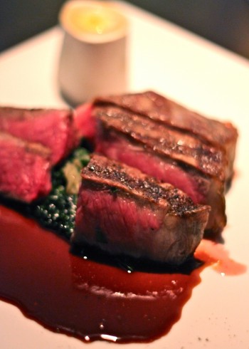 The 28-day dry-aged prime black angus sirloin ($90) is brought whole tableside and then dashed off to be carved and plated over a shiny, thin puddle of cipollini agrodolce, Benno's rendition of the traditional Italian sweet and sour sauce. The dish's most interesting feature is the bone marrow sformata, a creamy molded custard replaced in the bone. Ordered medium-rare, the steak arrived tender, juicy, pink and well-seasoned. It's strong, though not likely to be described as the subject of daydream and fantasy.