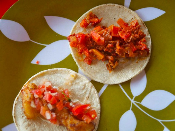 In the morning, we rented a car and slowly made our way to Tulum. We'd been advised to stop in Puerto Morelos, which is a small seaside town. Even here, we hungry travelers had to be wary of tourist traps — the places along the main square served chicken fingers along with, and I quote, "Mexican tacos," while the small, dusty side streets offered welcomed, authentic relief. We were told that La Playita had the best fish in town, but it wasn't open for lunch yet by the time we'd arrived. Instead, we took a gamble on the sweetly named Fountain of Flavor, which sounds much better in Spanish. It paid off in spades — we ordered fish, chicken tinga, and cochinita tacos, along with freshly made pineapple juices, and were endlessly rewarded by the bright freshness and simplicity of it all.