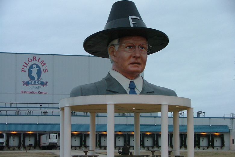 Pilgrim's Pride began in 1946 when Bo Pilgrim, his brother, and a business partner bought a Pittsburg, Texas, feed and seed store for $3,500. They sold baby chicks along with sacks of chicken feed, and farmers would bring back the full-grown chickens to be sold later. In 2007, Pilgrim's Pride had become the biggest poultry producer in the entire world.