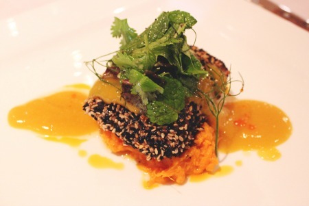 "I am a French-trained chef [who likes] to eat, cook, and research food and flavors of Asian, Latin American, Italian, and Spanish cuisines. I focus on intense, clean, balanced flavors and we strive daily to source the best local ingredients," said Bustamante.