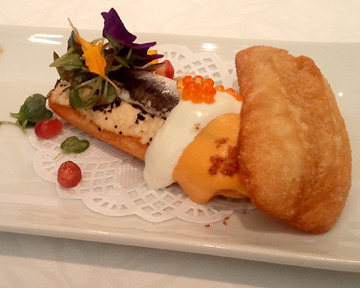 Among the other revelations to me: A wonderful array of cheeses, Spanish and otherwise (including a remarkable Catalan sheep's milk cheese called Llanut, covered in wool!), from Cheese Bar, a new all-cheese restaurant in Madrid with an immense cheese shop, Poncelet, nearby; an Adrià-inspired product called Caviaroli, which is olive oil spherified into little pearls, like grains of caviar; and a beautiful new copper device, developed in Italy, called Oleoteca, which is like one of those wines-by-the-glass machines, but dispensing oil instead. There's apparently already one in place at the C.I.A. Greystone campus restaurant in the Napa Valley, and Maris José San Román — chef-proprietor of Monastrell and La Taberna del Gourmet in Alicante — has joined forces with Paolo Pasquali, who invented the contraption, to popularize it in Spain.