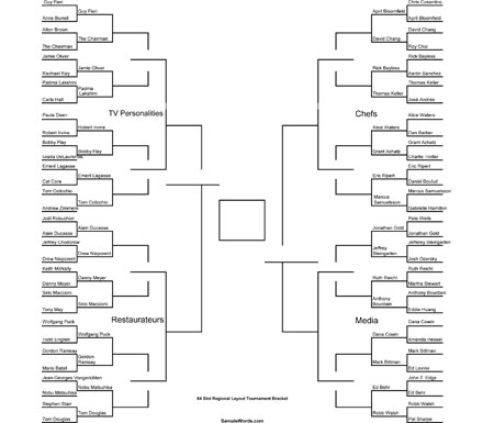 Taking inspiration from last year's Food Fight, we thought it would be fun to pit a roster of culinary superstars against each other in competition. We didn't seed them, but arranged them into four categories: TV food personalities, restaurateurs, chefs, and food writers.