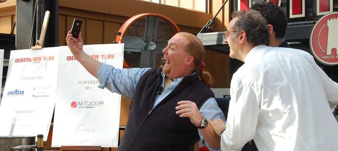 Mario Batali and Massimo Bottura kicked off the Identità New York cooking demonstrations (shown above), and as Bottura pointed out, "It's not easy to be on stage with Mario." When Bottura said that practice makes perfect pasta, Batali, ever the comedian, quipped, "Well, just like making love, too. If you practice, you simply do it better."