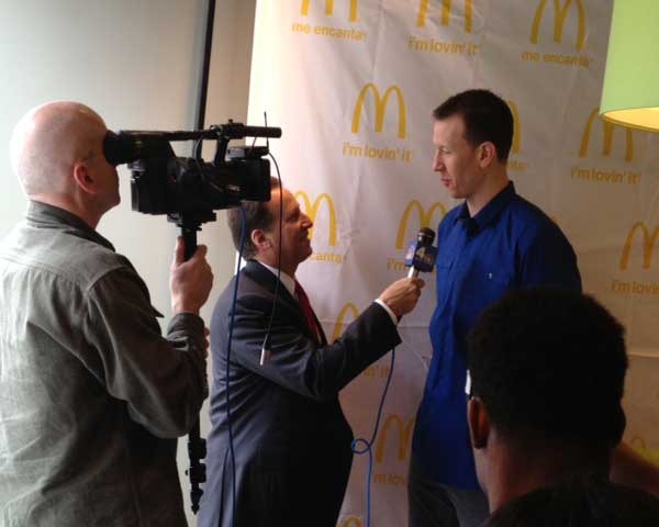 McDonald's officially unveiled its newest offering, the Premium Chicken McWrap, to the press and general public on Thursday at a location on Manhattan's Sixth Avenue, and it was a two-story bonanza.