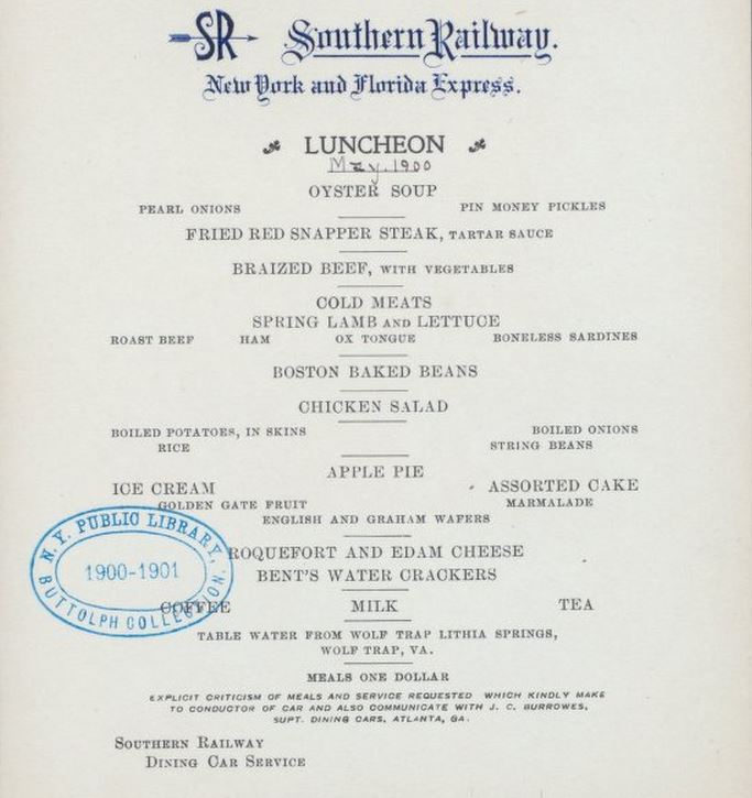 Menu Of The Week: The New York And Florida Express, 1900