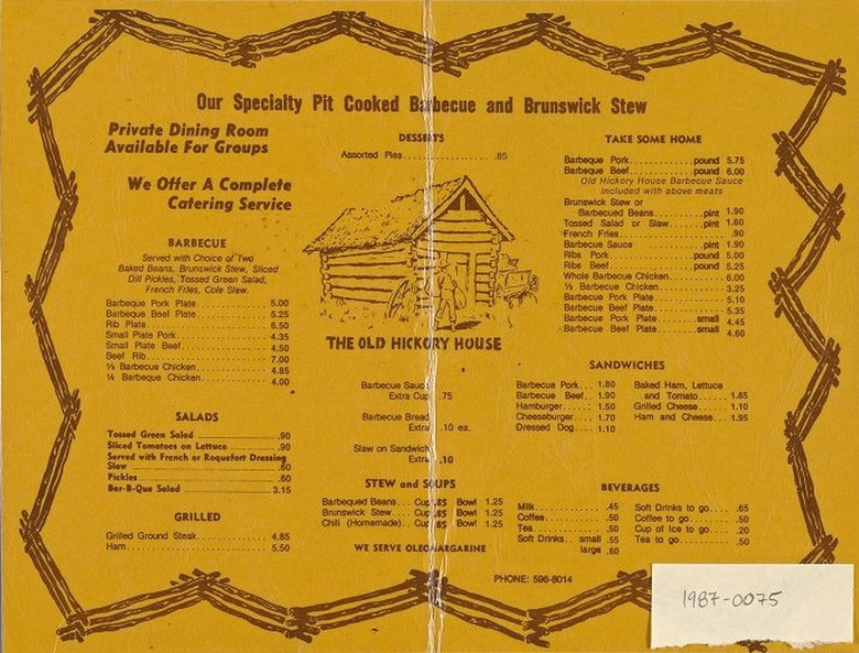 Menu Of The Week: Old Hickory House, 1987