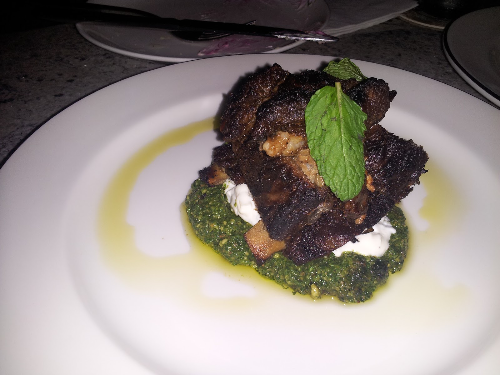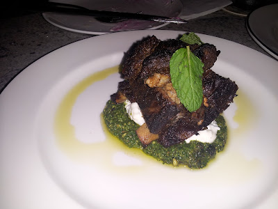 Spoiler alert: I start with the "good" that is the newOak Tavernin Miami's flourishing Design District. Home to a manifold of storefronts parading nouveau couches and sleek kitchen facades, this neighborhood nook also makes room for a gem of a restaurant. Owned by David Bracha of River Seafood & Oyster Bar in downtown, the indoor-outdoor flow of former dance club, The District (where I spent many a youthful night bopping away), lends itself perfectly to this rustic dining experience. I found myself there for happy hour, sipping on an ice-cold Stella under the gorgeously lit thick oak tree (hence the name) stretching its branches in the spacious front patio. Not only was the breezy ambiance spectacular, the noshes put me in my happy place as well. Despite being freshly open for a mere week, my Bone Marrow with succulently sweet oxtail marmalade was impecable, as were the Lamb Ribs on the bone served over a luscious layering of mint pesto and thick lemony yogurt. While the House-cured Maple Bacon bites were oddly naked and dwarfed on a supremely large serving board, salty and sweet is always a home run. The Roasted Beets were simply satisfying with creamy goat cheese and a detectable hint of nutty pistacchio vinaigrette. To boot, the service was attentive and amicable, giving you all the more reason to extend that happy hour past curfew.