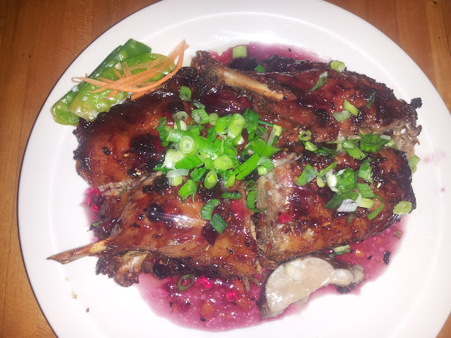 But thankfully, there is always the "yummy" to fall back on. For me (and everyone else who knows the hour-plus wait is worth it) is Hy Vong, a cozy (read, tiny) nondescript Vietnamese restaurant tucked on Calle Ocho: an anomaly on a street characterized by more Hispanic "old Miami" mom-and-pop businesses. Mom and pop this is, with no hostess but the proprietor simultaneously checking the scratch-paper waitlist and taking orders. Not a thing that touched our tongues was not complex in flavor and ultimately satisfying as it went down. For anyone that thinks they do not like Vietnamese cuisine, these dishes will convert you. The tender tongue was licked with soft notes of ginger and the sauteed calamari salad was coddled by the most impressive soy-lime dressing I've ever tasted. Going with superlatives, I had the best roast duck of my life here (this is not hyperbole). An impressive half bird is marinated and cooked in the perfectly sour-sweet sticky black currant glaze, deep but bright. The skin is blackened to a light crisp and the meat more supple than I could ever imagine duck to be. Also noteworthy were the brothy pumpkin soup spiked with fried shallots and the incredibly doughy Bahn Cuon rolls stuffed with pork and mushrooms. Dessert delivers with a thick pie-slice of firm but airy bread pudding, and well as the decadent chocolate brownie cake coated with gloriously rich fudge. So exceptional is this place, it can afford to be closed three days out of the week! Like its name means, Hy Vong is everything one could "hope" for, though ironically, little hope is needed for a fantastic meal.