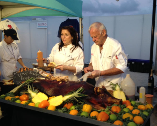 On Thursday night, the 2014 South Beach Wine & Food Festival got off to a rollicking start with its first big event under the big tent, The Q, formerly known as Bubble Q. Nearly 40 chefs staked their claim and served their best interpretation of barbecue (or a reasonable facsimile thereof), and the results were, in a word, outstanding.