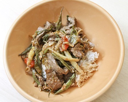 I have a dirty secret. Mongolian beef is one of my favorite things to order when I'm tempted to spend the night in, cozy up in front of the TV (my theoretical TV, since I'm one of those New Yorkers who doesn't have one), and just eat out of a box. A Chinese takeout box, that is. But, I've made a version here that won't require picking up the phone and that's a bit healthier, with the addition of green and yellow wax beans and some grape tomatoes on top of the usual bunch of scallions. Feel free to add in some sugar if you like the sauce a little on the sweet side. See all recipes for stir-fry. Click here to see Beef Recipes for Any Night of the Week