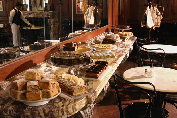 German and Austrian art and design is the heart of this museum, and its Cafe Sabarsky lends much to the atmosphere with its dignified European elegance. After getting your fill of Klimt's spectacularly robed ladies, get your fill within the caf's wood-paneled walls, brocade upholstery, and marble tables. Enjoy the rich selection of authentic strudels and tortes (recommended is the Sachertorte, a dark chocolate cake with apricot preserves) and selection of Viennese coffees. There are of course traditional meat and sausage-based entres, and many other options, like the sptzle with mushrooms, and Bavarian soft pretzels.