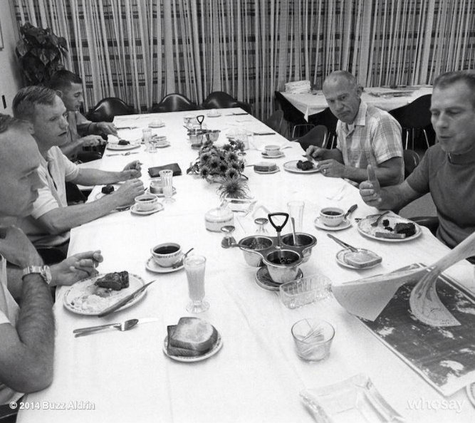"We had to use a water gun to send water into the plastic bag with the freeze-dried food. Now later on, things got much better and they were more like TV dinners that I remember — I don't see too many these days — as long as the food has some stickiness to it, it won't float around, but if it is like M&Ms, that are used in training with zero gravity, they're all over the place, and so would water form into spheres and float around in the cabin!