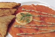 Home-cured gravlax is not hard to do, and delicious served on brioche toast points — it also pairs quite well with the mimosas.