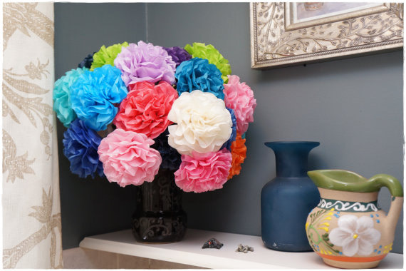 Don't waste valuable tissue paper on gift bags. Tissue paper can be used to make gorgeous paper flowers for your centerpiece. Spray a little perfume on them, and these forever flowers will retain a long-lasting scent.