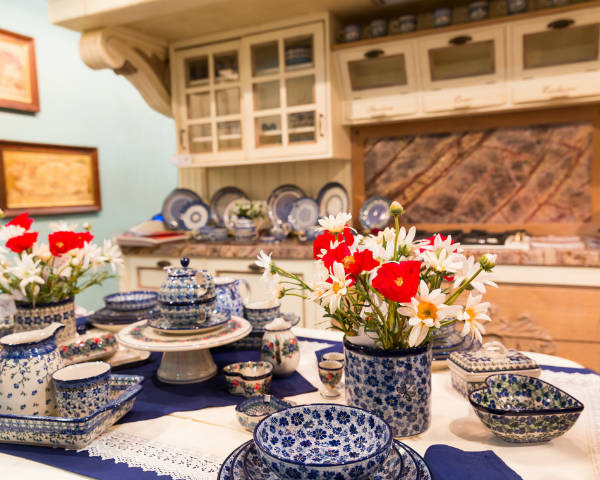 Using curtains and wallpaper or wall decorations that have floral patterns and themes can help to create a garden-like ambiance inside a kitchen. When complemented with an appropriate color scheme and artwork, the combination of real flowers and plants with floral patterns and artwork can transform a kitchen's decor and make it possible to continue reviving it with fresh floral arrangements and rotations of seasonal varieties of flowers. Poinsettias and other popular holiday flowers can keep the kitchen fresh, vibrant, and festive during the winter while flowers that bloom in the spring, summer, and fall also can keep kitchens looking new, smelling great, and feeling warm and welcoming at other times of the year.